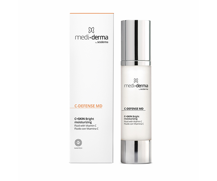- MEDIDERMA – C-DEFENSE MD_C+SKIN Bright moisturizing Fluid with vitamin C 50 ml – Fluid revitalizant cu vitamina C, complex de purificare, peptide antirid, pigmenți iluminatori care previne pigmentarea și estompează petele existente.